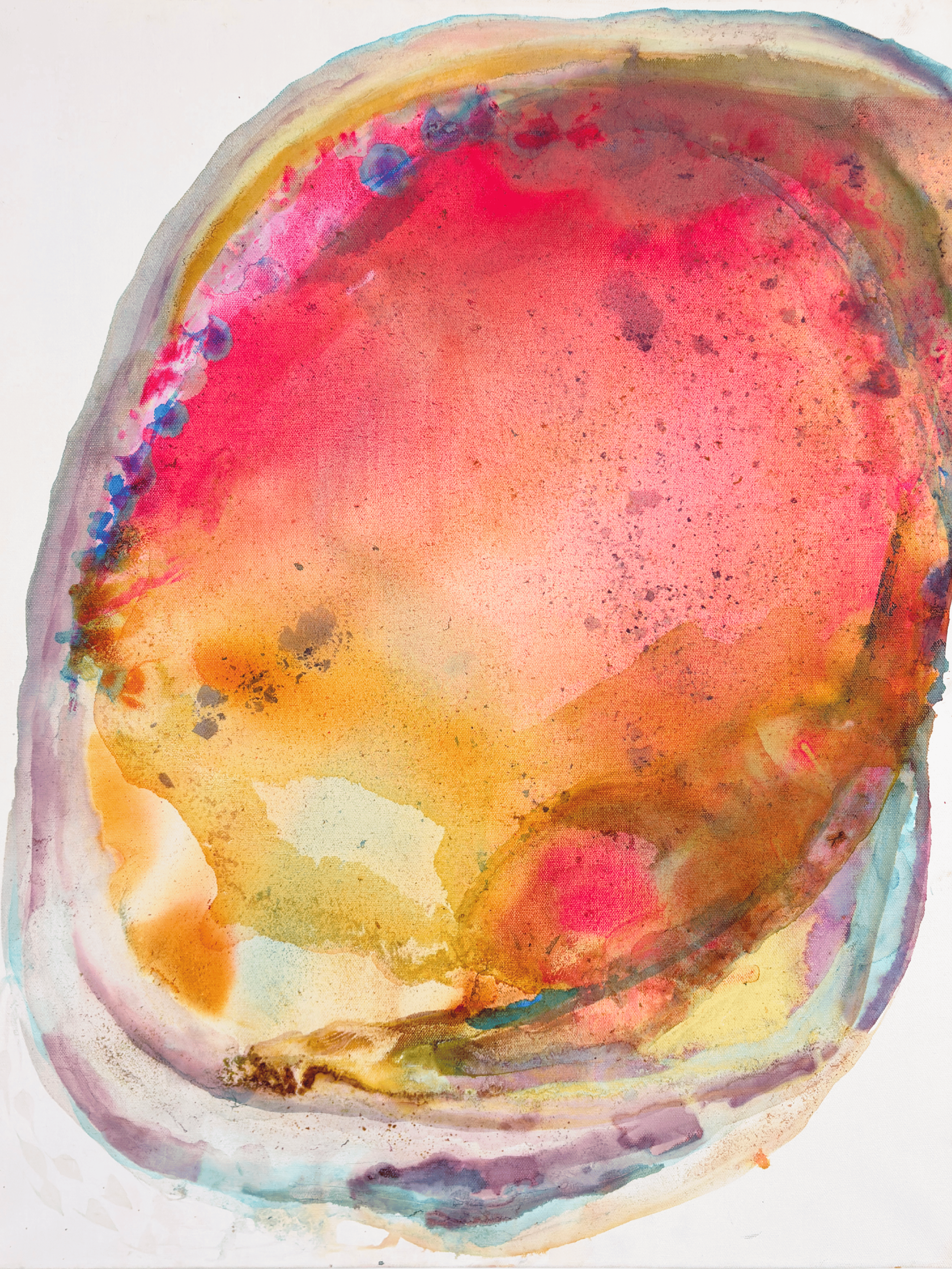 Subtle Bodies explores the unseen layers of human experience through soft, organic forms and a slow, intuitive process of paint, ink, and found materials. These works evoke emotional and energetic states that exist beneath language, using circular forms and diffused edges to suggest containment and quiet presence. Each piece functions as a visual record of moments felt rather than observed.